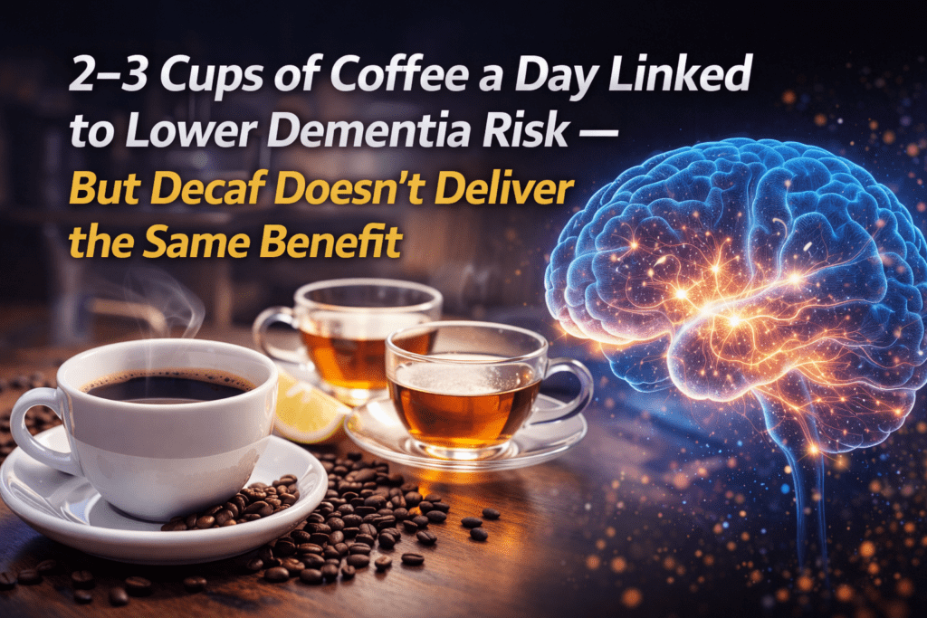 2–3 Cups of Coffee a Day Linked to Lower Dementia Risk — But Decaf Doesn’t Deliver the Same Benefit 2–3 Cups of Coffee a Day Linked to Lower Dementia Risk — But Decaf Doesn’t Deliver the Same Benefit Read More »featured, Health & Fitness
